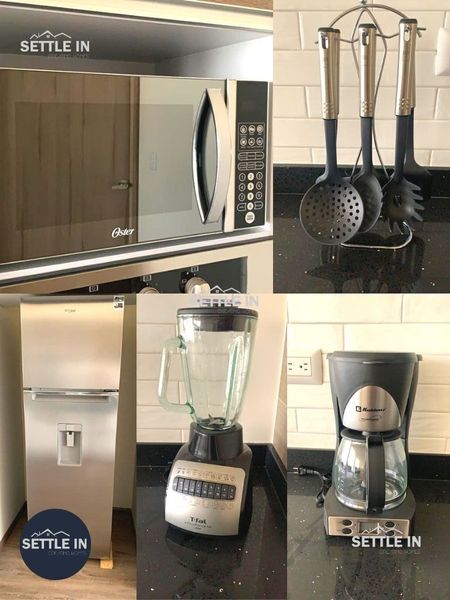 2 recámaras persianas blackout (recamara principal con vista al Volcán al Parque Del Arte), 2 baños completos, más medio de visitas, más el de servicio, cocina integral con cubierta de granito, sala-comedor, elevador directo al departamento, más el de servicio, una bodega.