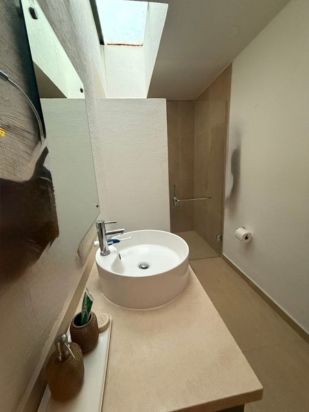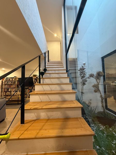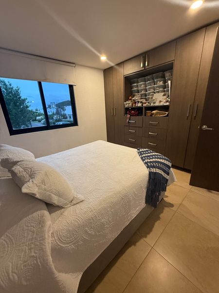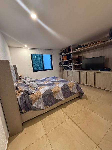 En planta alta dos recámaras, la principal muy grande con clóset y baño , secundaria cabe King y amplia área de tv.