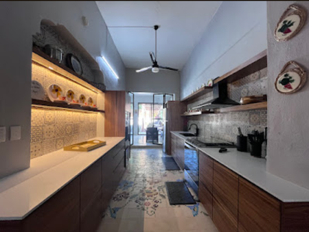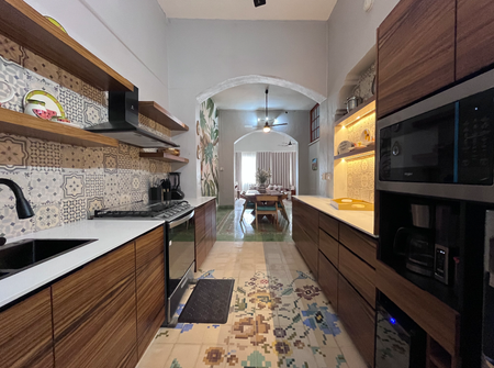 - Cocina recien remodelada: vestida con liston de parota y meseta de cuarzo
