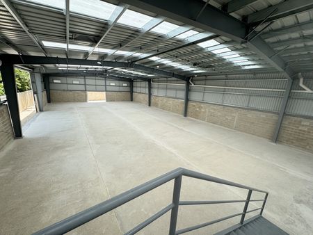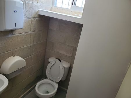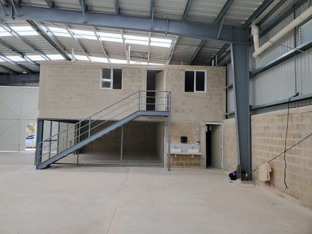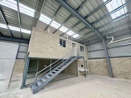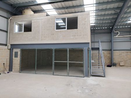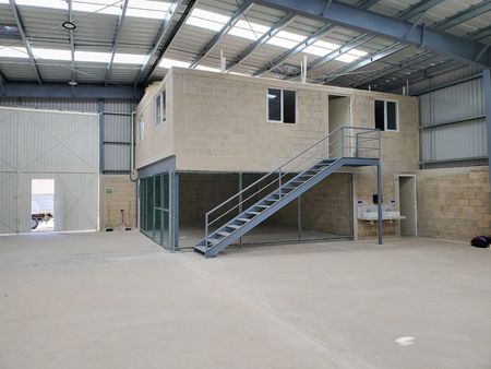 Cuenta con área de maniobras y estacionamiento, ventilación, oficinas, 3 baños y bodega.