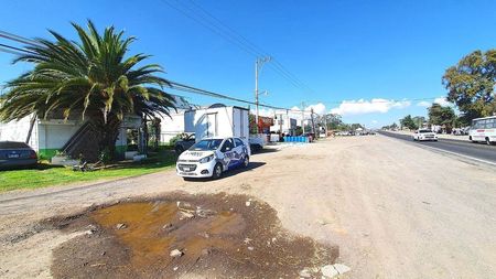 Bodega con dos locales de uso comercial sobre carretera,cuenta con una superficie total de 1,650 m2 bardeados y 250 m2 techados, cuenta con oficinas y baños.
