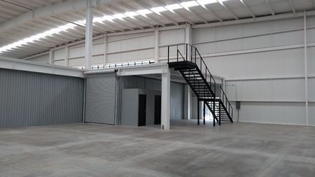 Características: Estructura: Fabricada en acero con marcos y montenes de 28 kg m2, Paredes: Tabletas pre fabricadas de concreto a 5m de altura, 12 cm espesor y lamina de KR 100 hasta 11 mts. Altura libre: Altura a hombro de nave 9.7 m, altura a cumbrera de cubierta 11m2 Estacionamiento Alrededor de 5 cajones por cada 1,000 m2 de bodega, Andenes de Carga Desde 1 andén por cada 1000 m2 de bodega, Sistema de techado: Cubierta a base de Lamina con Placa de polietileno de 1”, Iluminación Natural 15% de iluminación natural por medio láminas traslucidas Tipo de Piso De concreto con resistencia de 5.5 ton/m2 Separación entre Columnas 25 x 10 mts entre columnas Acceso Caseta de vigilancia Capacidad de energía eléctrica 20 kva’s por Bodega Rampa niveladora: Capacidad de carga nominal: Entre 35,000 y 45,000 libras Aislante: Aislante Térmico Cisterna: Capacidad de 250 m3, vigilancia del parque 24/7 los 365 días del año