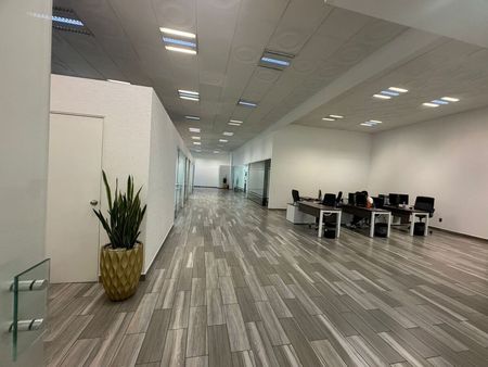 Estacionamiento para 25 autos, patio de maniobras, entrada para carga y descarga de tráileres, zona de almacenaje de aproximadamente 7000 mts., tapancos de aproximadamente 2000 mts.