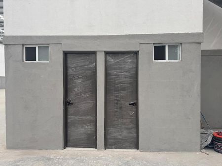 - 2 oficinas de 160 mts en planta alta con 4 baños en planta alta para administración (2 por oficina) y 8 baños en planta baja para operarios.