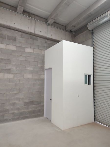 Se entregan con una oficina y medio baño. Fachada y estructura de concreto. 4 cajones de estacionamiento. Cubierta de lámina rolada sistema acústico y térmico (absorbe ruido y altas o bajas temperaturas), ancho de cortina 3.10 metros y altura de 5.40 metros a 4.40 metros.
