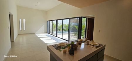 • Sala y comedor con plafón a 3.8m de altura con ventanal al área de jardín y alberca