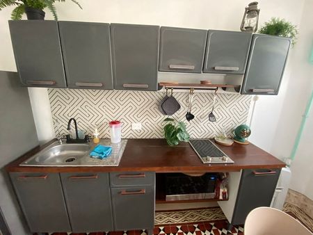 -Cocina Vestida y equipada con horno de microondas, parrilla de inducción 2 quemadores y refrigerador.