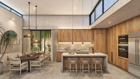 -Una cocina abierta que se integra al comedor y la sala.