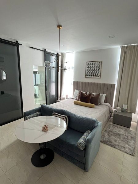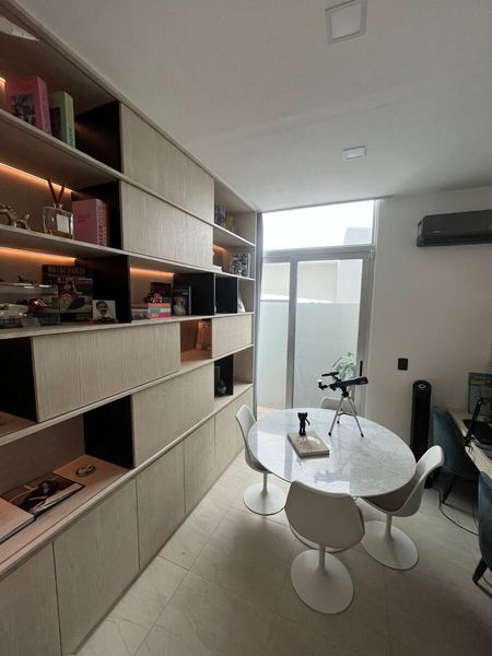 En la planta baja con recibidor, baños de visitas, amplios espacios, cocina abierta totalmente equipada que se integra con la sala, el comedor. Cuenta con un estudio que también puede funcionar como recámara de visitas con baño completo. Cuarto de servicio, terraza con pérgola, doble altura, y amplia alberca.