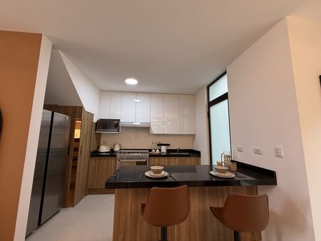 Cocina: Cocina con barra desayunadora y área para electrodomésticos.