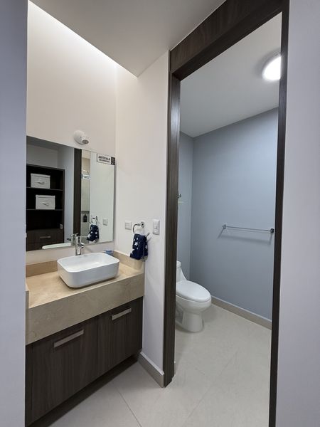 Habitación Principal: Espacio para cama grande con vestidor y baño completo en suite.
