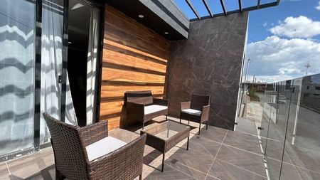 Equipada con protecciones de seguridad, calentador solar grande, 2 tinacos 1,100 lts, tanque estacionario, boiler de paso.