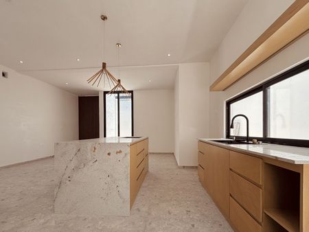 Cuanta con un jardín trasero y una alberca que crean un espacio ideal para relajarte, área de asador y conexión con la cocina con isla, que se convierte en el corazón de la casa.