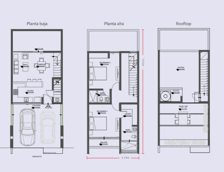 -Rooftop: Incluye pérgola. No incluye barra, meseta, parrilla, lavabo y luces decorativas.