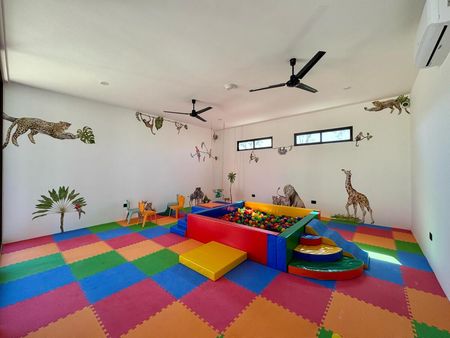 Caseta de acceso / Pet park / Cancha de pádel /Cancha de uso múltiple / Área de asador / Parque infantil / Circuito de jogging y ciclovía / Juego de Niños pequeños / Terraza exterior / Kid's club / Gimnasio / Salón de Yoga y funcional / Cava / Lobby bar Alberca / Canal de nado / Locker Room /Deck de asoleaderos / Salón de fiestas / Saunas