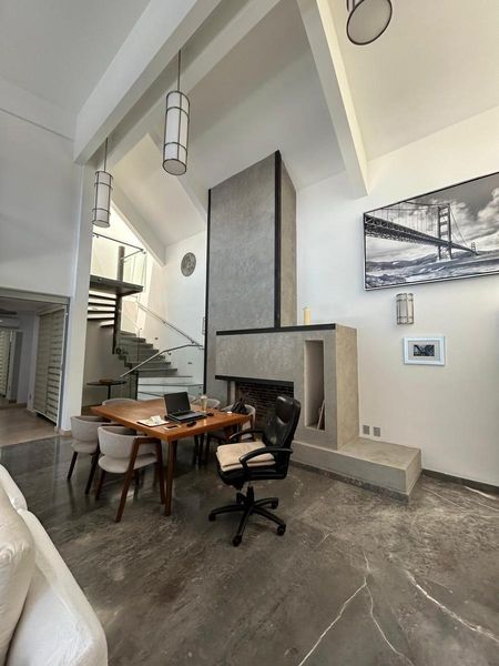 En el primer nivel consta de sala comedor con una hermosa chimenea. Loseta de gran formato de marmol en pisos, excelentes acabados. Ventiladores en techo, luz indirecta en toda la casa y acceso directo a la terraza con ventanales grandes que incorporan la sala con la terraza.
