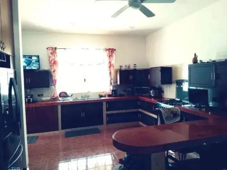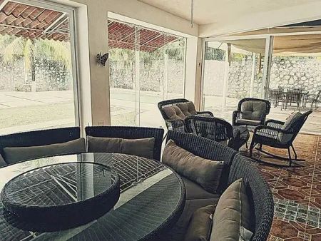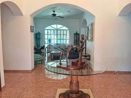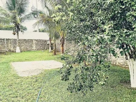Propiedad con gran extensión de terreno (1,902 m²) y residencia con departamento independiente, rodeada de naturaleza, árboles frutales y palmeras.