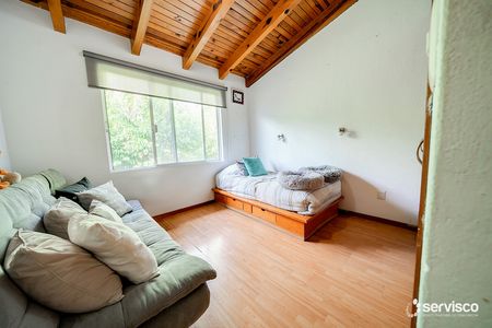 Residencia de dos niveles en venta. Se encuentra estratégicamente ubicada en una exclusiva zona arbolada. Disfrute de la tranquilidad y la privacidad que ofrece este entorno, sin renunciar a la comodidad de estar cerca de todos los servicios. La propiedad cuenta con tres amplias recámaras, cocina , comedor, estudio, y un jardín que invita a la relajación. La abundante luz natural y la distribución inteligente de los espacios crean un ambiente cálido y acogedor. Seguridad y fácil acceso son solo algunas de las ventajas de vivir en esta exclusiva comunidad.
