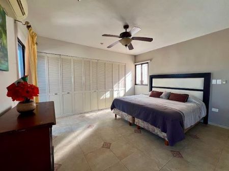 Recámara principal con amplio clóset de pared, dos balcones y un baño completo con jacuzzi equipado