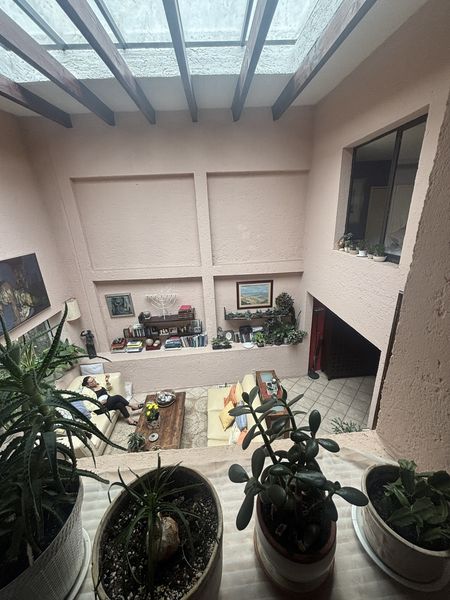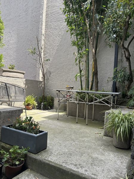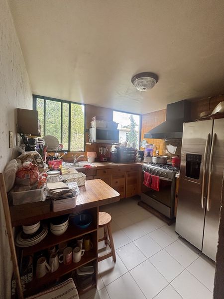 patio, baño completo y recamara. Medio nivel hacia abajo se encuentra el cuarto de
