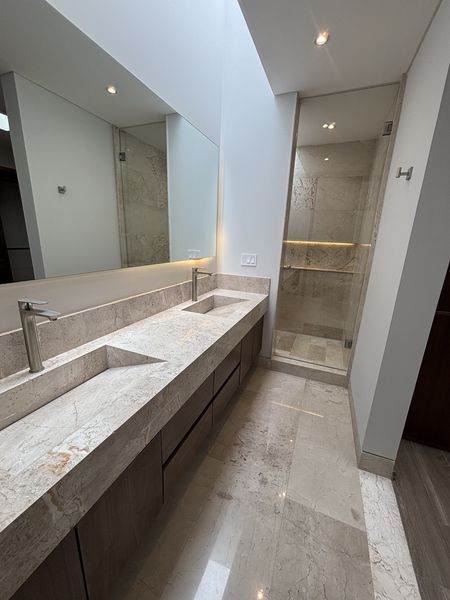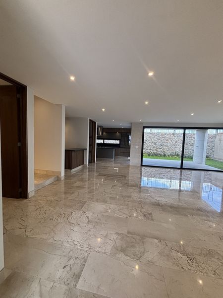 Primera planta: cochera techada para 3 autos, sala comedor muy amplia, estudio en planta baja o 4ta recámara, baño completo, cocina súper equipada (lavavajillas, accesorios, torre de hornos), área de bar con muebles, terraza techada.