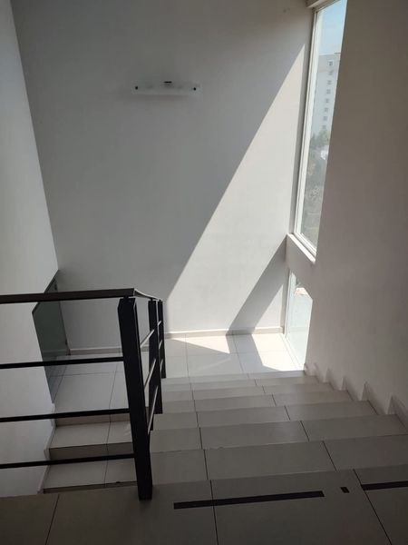 Planta baja: sala comedor, cocina equipada, un estudio medio baño, área de lavado techada, sala de tv, patio muy amplio, cochera para tres carros con controles