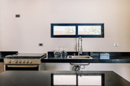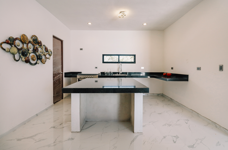 • Cocina con isla desayunador y carpintería inferior.