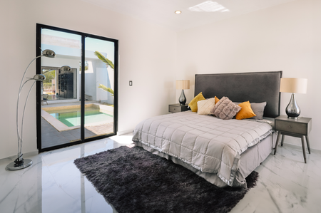 completo, con ventanales para acceso a la piscina.