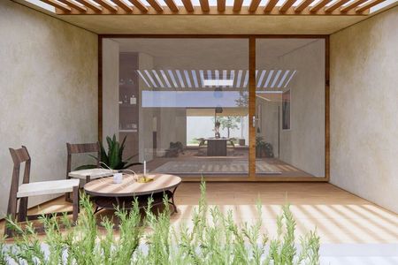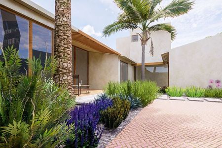 Al espacio privado de la casa, de tres recámaras cada una con baño, se accede mediante un pasillo privado y vestibulado que alinea los servicios para eficientar su uso. La recámara principal tiene una terraza privada y vistas al jardín.