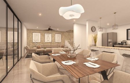 Privada residencial conformada por 75 residencias de 3 y 4 recámaras con amenidades como terraza social y área de asadores. Ubicada en la zona de Temozón Norte a solo unos minutos de los mejores centros comerciales y universidades de la ciudad de Mérida. Son 8 modelos diferentes, todos con paneles solares, alberca, carpintería en cocina, hidroneumático, mármol en escaleras y muro interior decorativo con piedra. La privada cuenta con caseta de vigilancia 24/7, cerco eléctrico, área infantil, gym equipado,