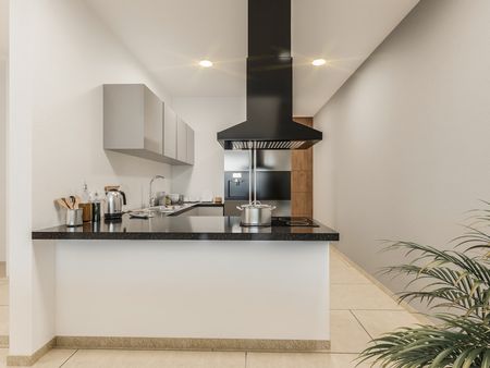 Cocina vestida con recubrimiento en granito color negro, San Gabriel y Carpintería incluida