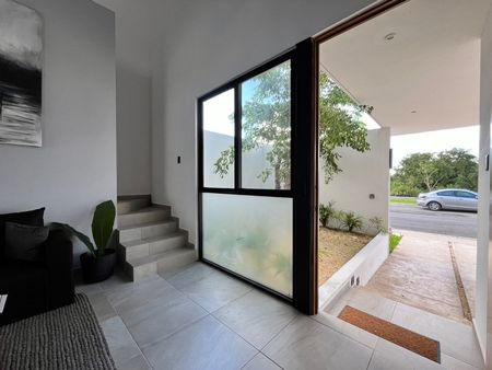 El proyecto arquitectónico es de líneas minimalistas. La privada cuenta una caseta de acceso en el centro con un diseño distintivo.