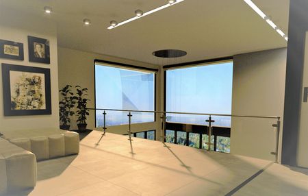 • Vestíbulo conecta con 3 recámaras y pasillo con barandal de cristal