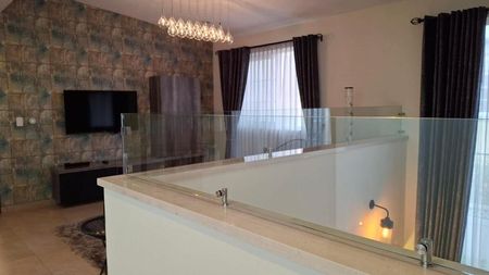 ACABADOS: Escaleras de Marmol, Pasamanos de Vidrio Templado y Acero, Sala a doble altura, Ventanería Alemana lo cual hace que se vea muy iluminada, lámparas en toda la Casa,
