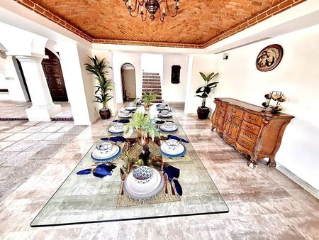 Esta residencia en renta amueblada (venta sin muebles) se encuentra en esquina por lo que la hace tener mucha luz natural y se destaca su diseño y estilo mexicano en 2 niveles, con un patio central con doble altura, 4 recamaras 3.5 baños, recién remodelada, climas nuevos, con doble filtro de seguridad, ademas se encuentra frente a las amenidades de la privada.