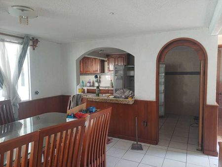 Casa en renta en colonia Jiménez Gallardo, Metepec. Cuenta con tres recámaras, la principal con vestidor, un baño completo, sala y comedor amplios e independientes, cocina grande y funcional, jardín amplio, patio de servicio y cochera para tres autos con portón automático.
