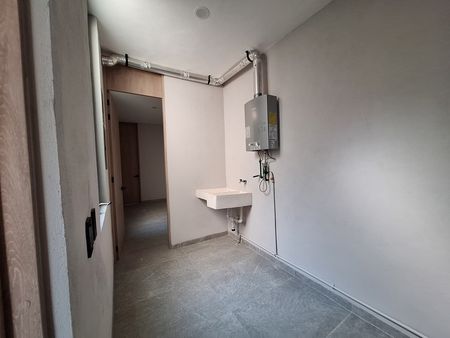 Recámara con closet, baño compartido con área social, sala, comedor, cocina integral con areas de almacenaje de piso a techo, con doble tarja, isla, amplia área de lavado, cuarto de servicio.