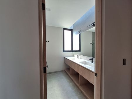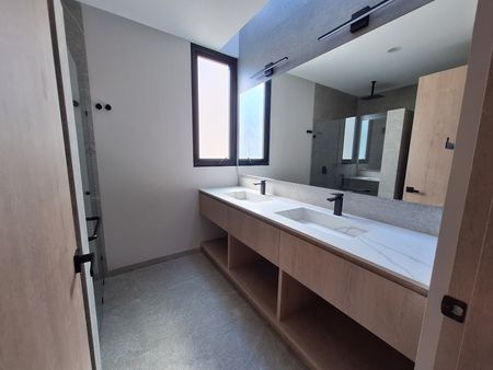 Recámara principal con vestidor, doble lavabo, baño y regadera separados, ventanal con vista a la reserva, sala de TV abierta, 2 recámaras con closet y baño cada una. Jardinera en recámara.