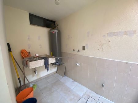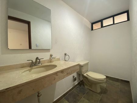 Descripción: Planta baja: Cochera con portón eléctrico para 2 autos, medio baño, recibidor, sala-comedor, cuarto de lavado, baño completo, pasillo que da al jardín, cocina integral con alacena grande, jardín amplio.