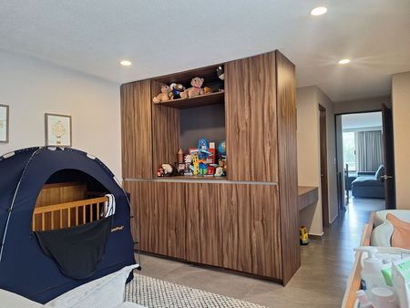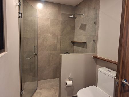 Tercer nivel: Recámara secundaria con closet y baño, estudio adicional pequeño con salida a terraza y roof garden.