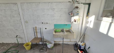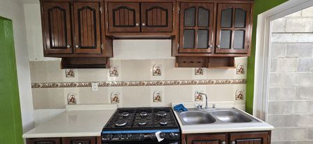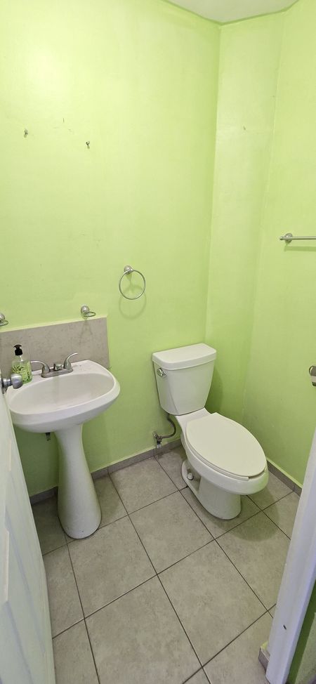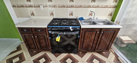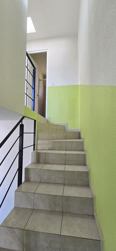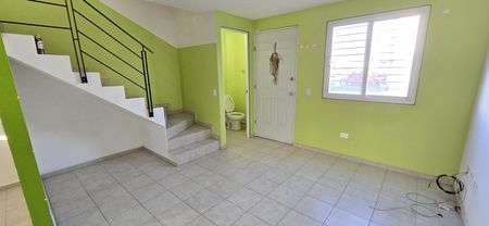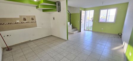 Planta baja: huellas para un auto estacionado al frente y posibilidad de tener otro sobre la calle / jardín frontal/ medio baño / amplia estancia de sala y comedor / cocina equipada con estufa nueva / patio de lavado / jardin trasero.