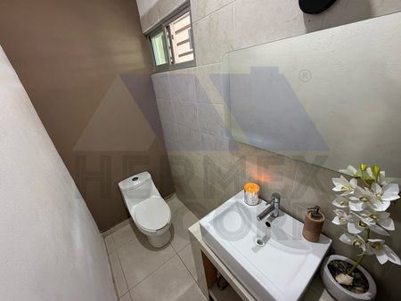 En la planta alta, la casa cuenta con área de TV, dos recámaras, cada una con clóset y baño completo, balcón y área de lavado.