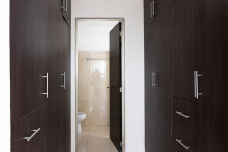 Recámara con área de clóset vestido baño y aire acondicionado