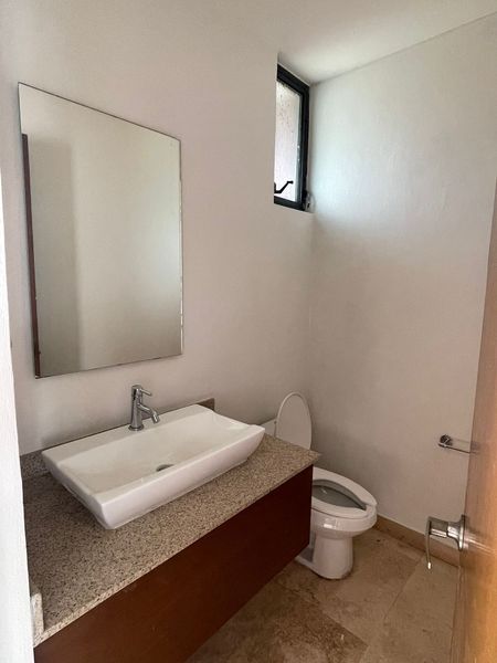 Casa en renta en Porta Real, Condominio Salermo. Cuenta en planta baja con cochera para 2 autos, sala comedor, cocina integral con barra desayunadora, medio baño de visitas, jardín, área de lavado con baño de servicio En planta alta con 3 recámaras, la principal con baño y vestidor, las otras 2 comparten baño y tienen closet cada una, se entrega con A/A en sala comedor y recámara principal. Casa club con alberca, área juegos infantiles, jardín y vigilancia las 24/7. Incluye mantenimiento. Informes 331210075 / 3311 764161