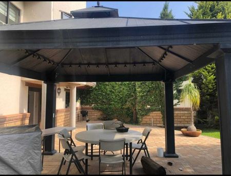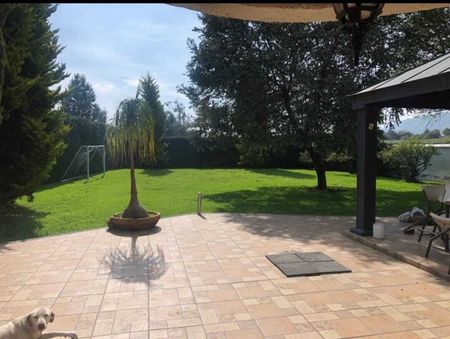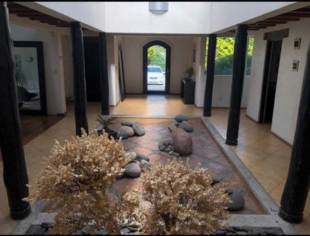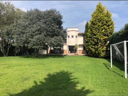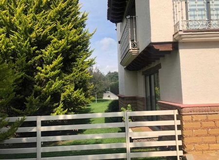 Amplio Jardín de 3,150m2, con algunos árboles frutales y pinos, cercado eléctrico en su totalidad de la propiedad y Sistema de alarma.