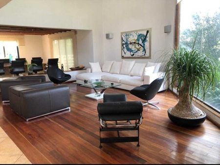PB: Vestíbulo de Acceso Principal, jardín interior, Espacio para Cava, Amplia Estancia a doble altura, Comedor para 12 Comensales, Cocina Integral Moderna, con desayunador, Alacena, jardín en la parte trasera de la casa.
