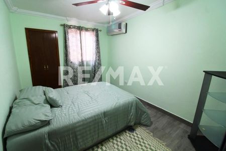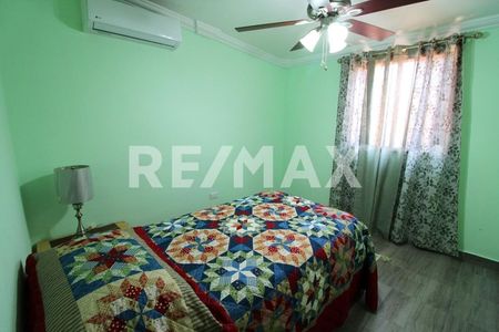 La recamara principal cuanta con: Cama matrimonial con colchón y ropa de cama, cortinas, mueble de cristal de varios niveles para TV., closet, abanico de techo y mini Split de una tonelada.