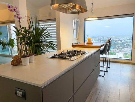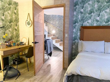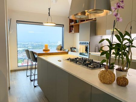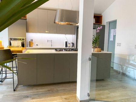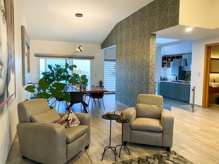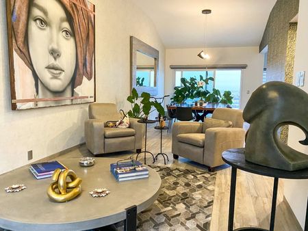 Disfruta de esta propiedad remodelada con los mejores acabados y completísimos espacios con vistas panorámicas a la ciudad. Gracias a su distribución, la estancia y la cocina están prácticamente en una planta libre tipo loft, lo que le da una dinámica muy social para los mejores anfitriones. En la planta de acceso está, también, la sala de TV con un práctico ático.