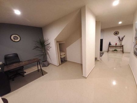PB: Sala, comedor, medio baño, cocina en alto brillo equipada con barra de granito, estudio, precioso jardín, cuarto de servicio independiente y techado, instalación para aire acondicionado, 2 lugares de estacionamiento