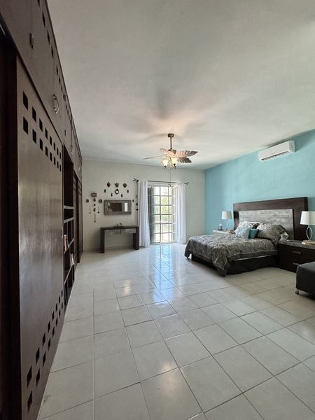 La casa cuenta con aires acondicionados, ventiladores, cerca perimetral electrificada, cortinas anticiclónicas, alacena y bodega.